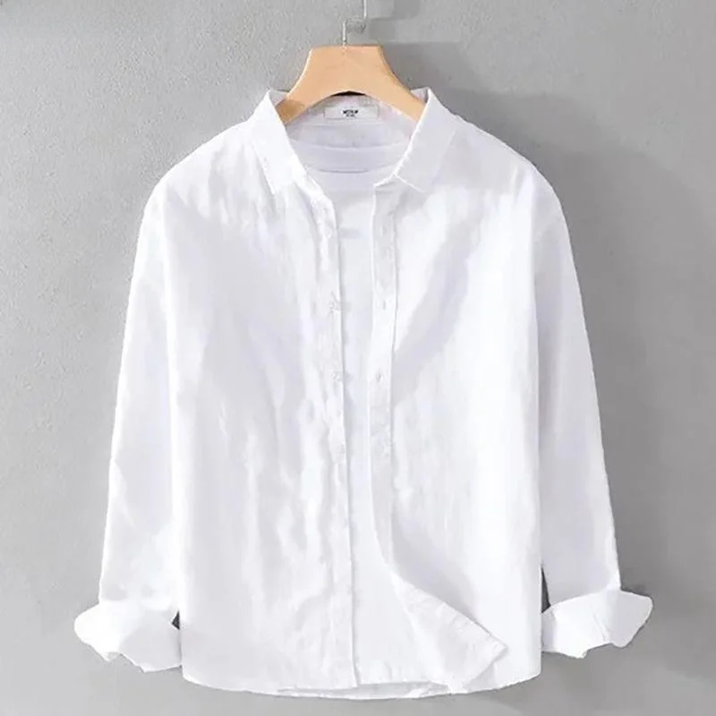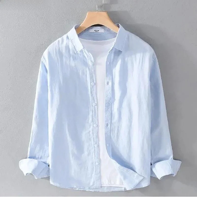 قميص شبابي صيفي بكم طويل قطن وكتان